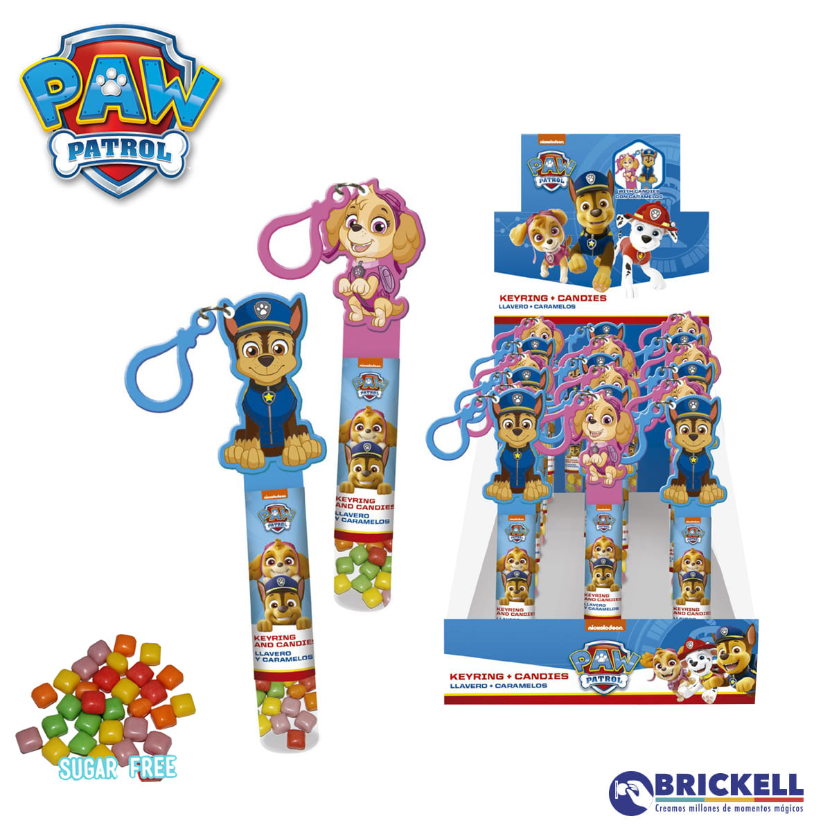 LLAVERO TUBO CON CARAMELOS MASTICABLES SIN AZUCAR (16 cm)