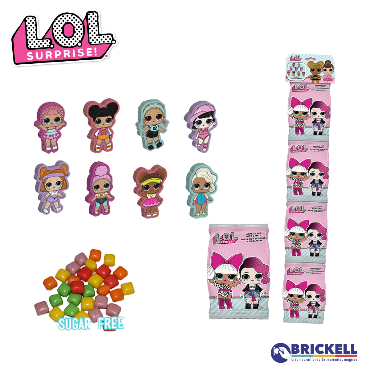 MINI BOLSA SORPESA CON GOMA DE BORRAR + STICKERS + CARAMELOS MASTICABLES SIN AZUCAR